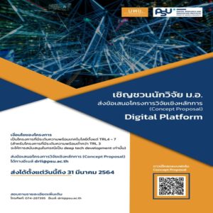 สถาบันวิจัยและนวัตกรรมดิจิทัล มหาวิทยาลัยสงขลานครินทร์ ขอเชิญนักวิจัย ม.อ. ส่งข้อเสนอโครงการวิจัยเชิงหลักการ Digital Platform โดยเป็นโครงการที่มีระดับความพร้อมเทคโนโลยีตั้งแต่ TRL4-7 (สำหรับโครงการที่มีระดับความพร้อมต่ำกว่า TRL3 จะให้การสนับสนุนในกรณีเป็น deep tech development เท่านั้น) ผู้สนใจสามารถส่งข้อเสนอโครงการวิจัยเชิงหลักการได้ทาง E-mail : drii@psu.ac.th ตั้งแต่วันนี้ถึงวันที่ 31 มีนาคม 2564 Download แบบฟอร์ม สอบถามรายละเอียดเพิ่มเติมที่หมายเลขโทรศัพท์ 074-287395 E-mail : drii@psu.ac.th อ้างอิง https://research.psu.ac.th/th/index.php/fund-news/1841-digital-platform